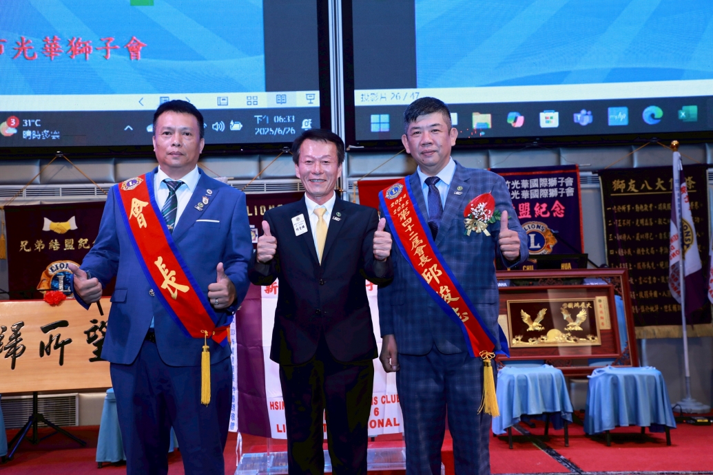 本會很榮幸榮任新竹光華獅子會第43屆會長,從此刻將是責任的開始,擔任會長是一項榮耀也是一份責任,未來我將延續著本會歷屆前會長的優良傳承,秉持獅子理念犧牲奉獻的精神,積極堆動會務,使本會會務更上一層樓,服務社會造福人群、協助弱勢。跟著2025-2026年300B 6區總監黃秀卿獅友的年度主題【卿力卿為、樂在服務】,只要有需要服務的地方,就有我們 子會的身影,更不辜負全體獅兄的託付與期許。