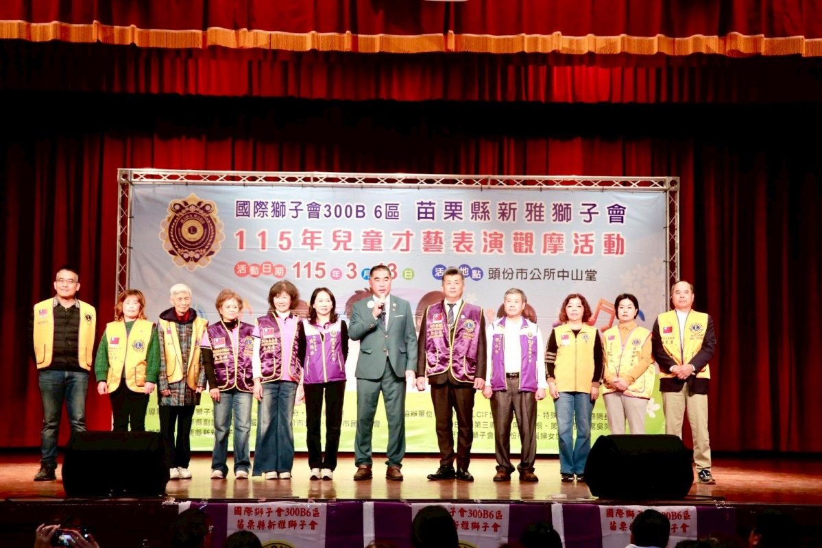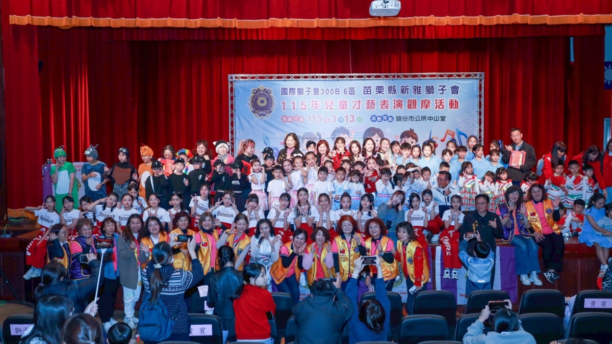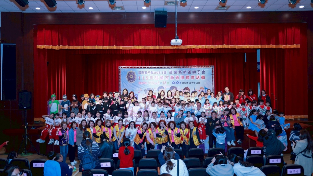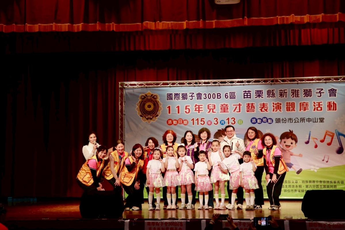 兒童才藝表演觀摩活動 發布日期:2026-03-16 本會於115年3月13日下午6:00於頭份市栓堂舉辦年度"兒童才藝表演觀摩活動"感謝指導單位及協辦單位的支持與協助,也感謝獅友們的相挺,觀摩人數達500人,活動圓滿完成,謝謝大家