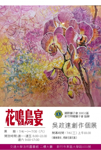 藝術家吳政達,是現任新竹市青溪新藝文學會理事長,在創作這條路上已經走超過20年,擅長以色彩鮮豔的花卉為題材,畫面中有許多潑灑的顏料表現畫面生機蓬勃的喜悅,作品花卉多以各式的景觀花為主題,以鮮豔色彩傳達正面情感傳達給觀者。