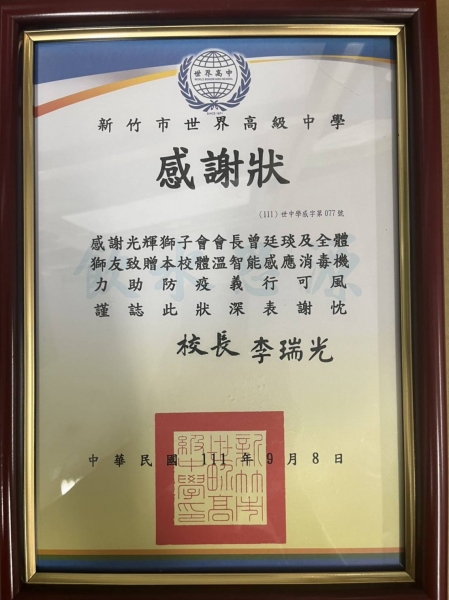 世界高中捐贈微電腦體溫感測器