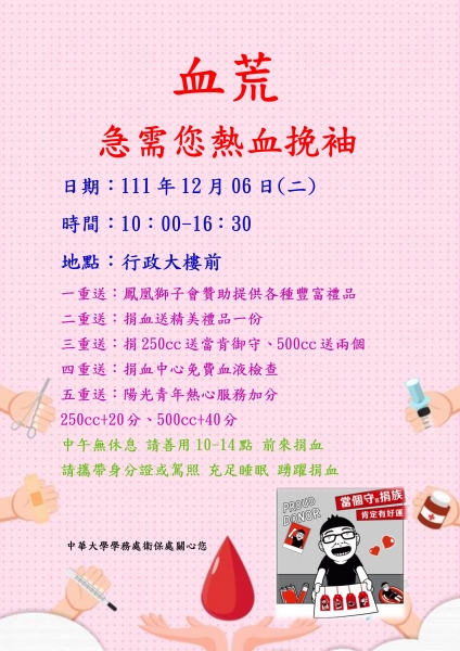 捐血活動於中華大學舉行 計捐得72袋