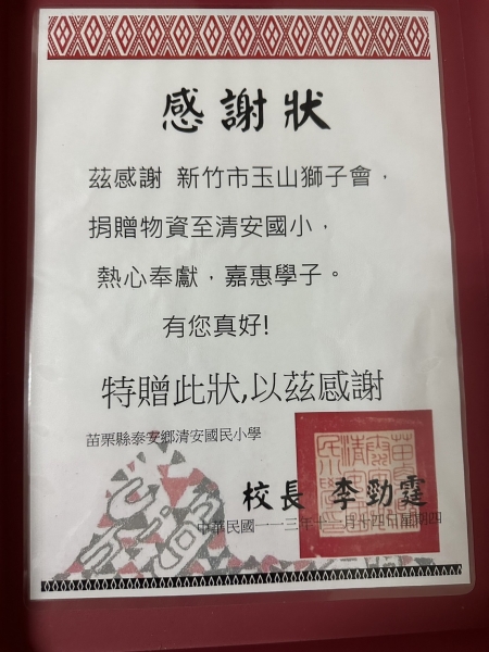 今天,我正式接任第四屆會長職務,也將以感恩的心接起這份重任,並以「愛心傳遞、服務社會」作為我們未來一年的工作口號。這不僅是一個口號,更是我們在座每一位玉山獅子會成員的承諾和行動指南。