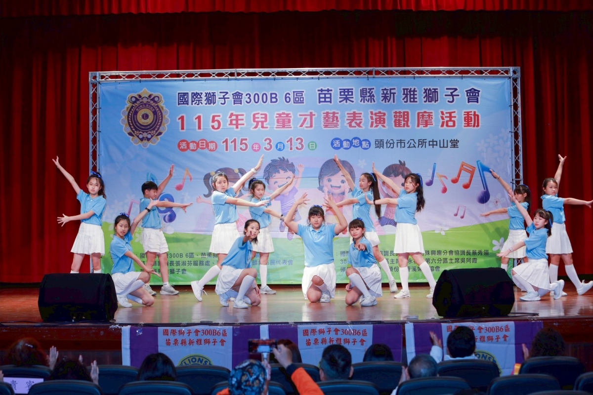 兒童才藝表演觀摩活動 發布日期:2026-03-16 本會於115年3月13日下午6:00於頭份市栓堂舉辦年度"兒童才藝表演觀摩活動"感謝指導單位及協辦單位的支持與協助,也感謝獅友們的相挺,觀摩人數達500人,活動圓滿完成,謝謝大家